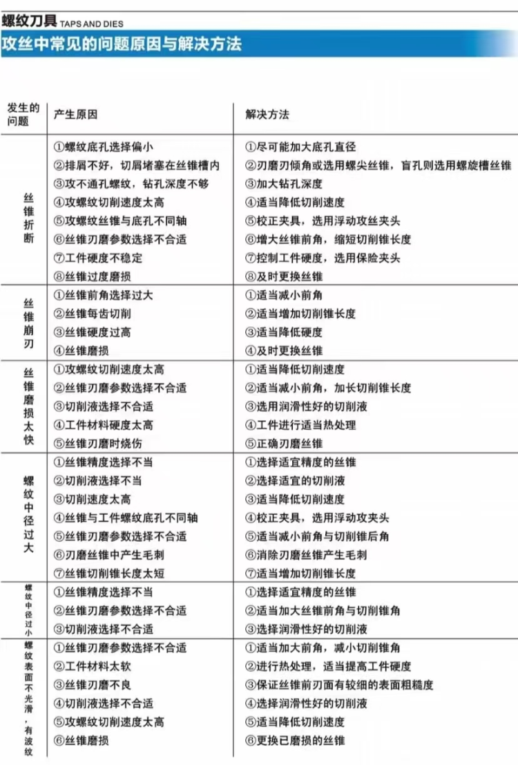 攻絲中常見的問題原因與解決方法